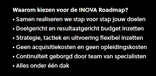 De wereld verandert. De ene transitie volgt de volgende op. Sneller dan ooit. Waarbij alles draait om mensen. Door mensen, met mensen, voor mensen. Gestaafd op data. ondersteund door digitalisering. INOVA levert meer resultaat uit marketing en data. We werken volgens de unieke INOVA-roadmap. Onze samenwerking maakt jou en ons onderscheidend. Want hey… we are you.